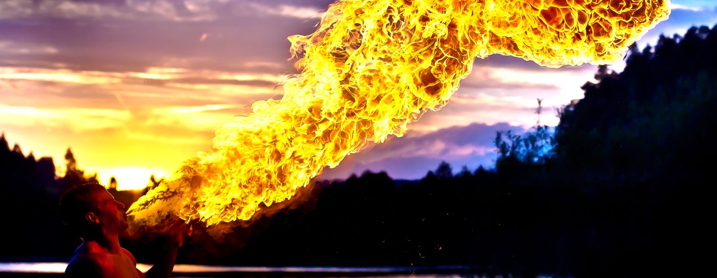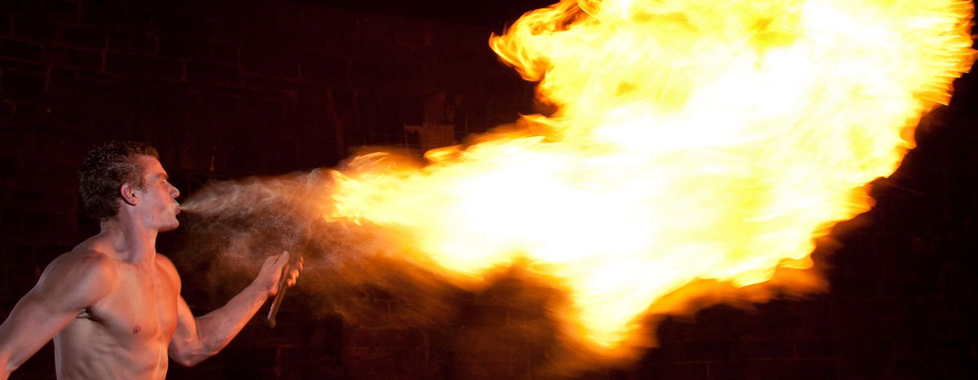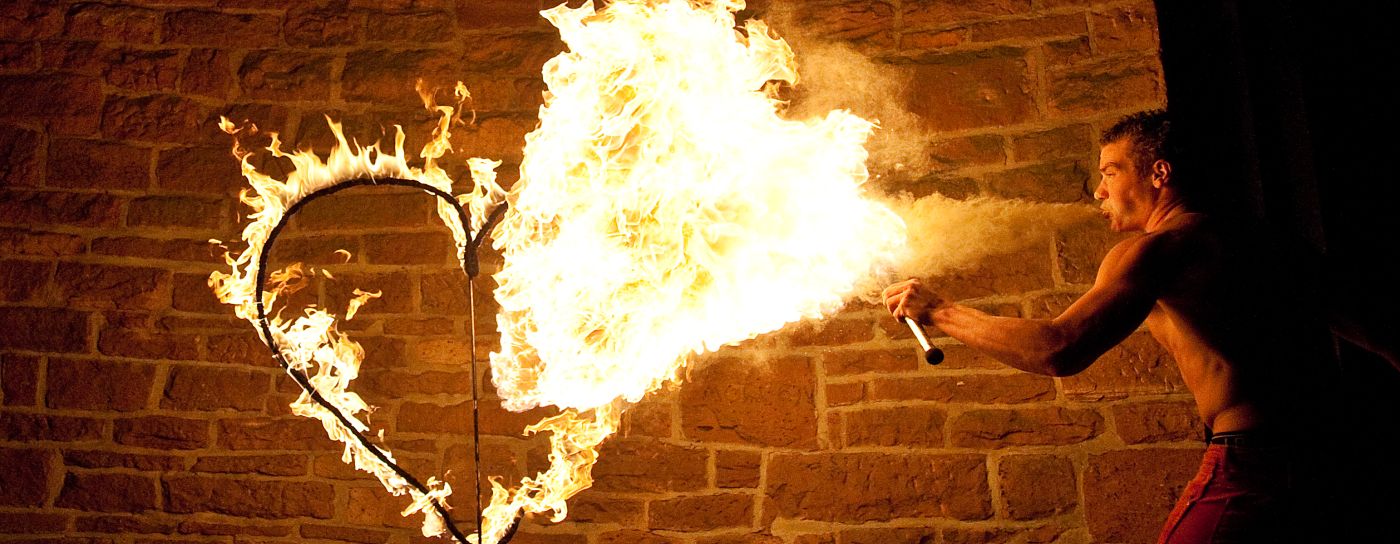 • Feuerschlucken (riesige Feuerflammen werden mit dem Mund gelöscht)