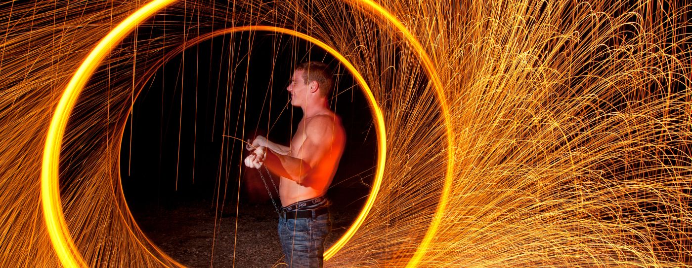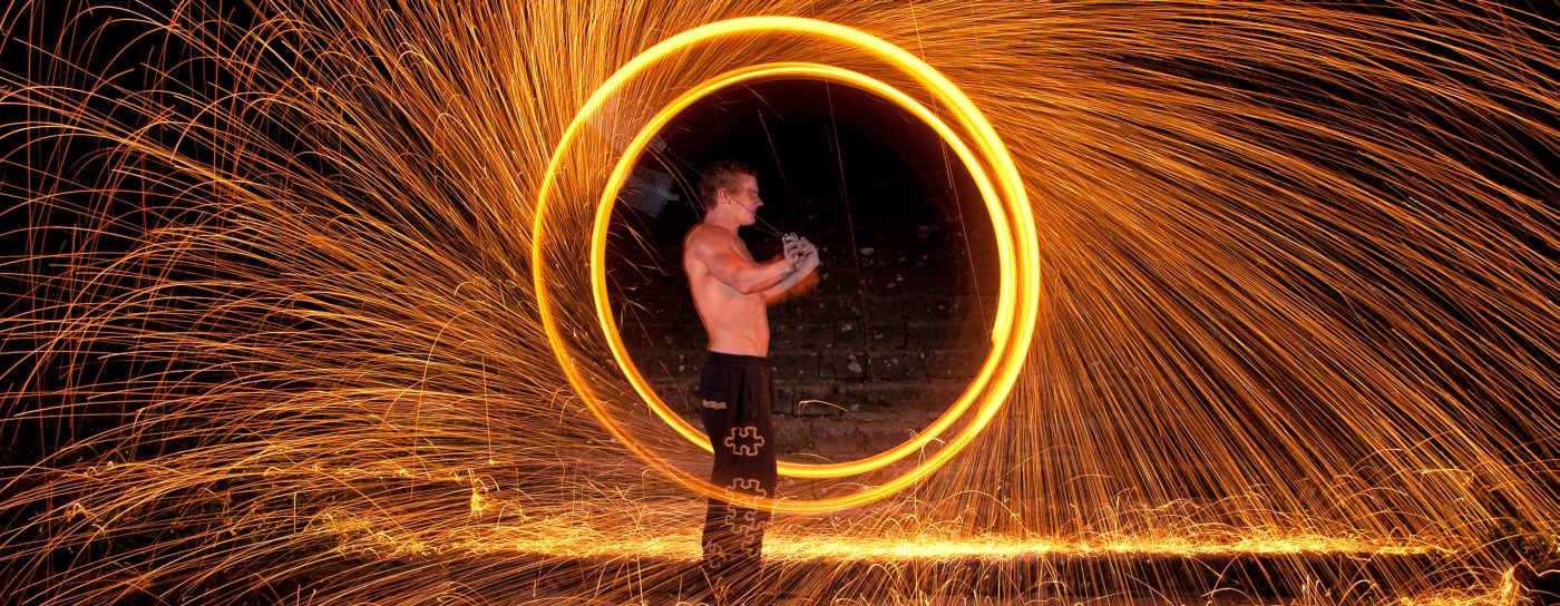 • Feuerjonglagen (Fackeljonglage, Feuer-Devilsticks, brennende Teller)